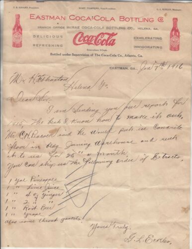 Title (ebay affiliate link): EASTMAN COCA-COLA BOTTLING CO. LETTERHEAD DATED JAN. 7th - 1916