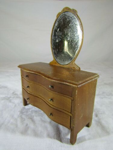 Vintage Strombecker Dollhouse Furniture Cherry Wood Bedroom Dresser With Mirror