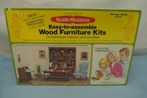 Title (ebay affiliate link): VINTAGE NOS REALIFE MINIATURES DOLL HOUSE FURNITURE KIT DESK LIBRARY SCALE 1"=1''