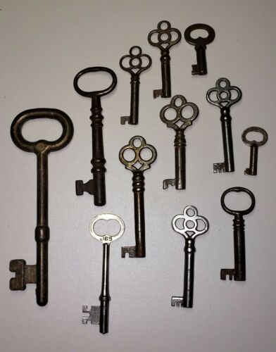 Title (ebay affiliate link): LOT OF 12 ANTIQUE SKELETON, FURNITURE, BARREL, CABINET AND OLD LOCK KEYS