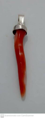 Title (ebay affiliate link): Natural red coral horn pendant 38 mm set in silver hand made in Italy vintage
