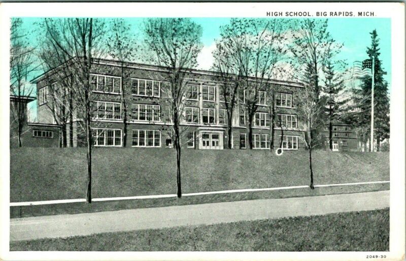 C44-0449, HIGH SCHOOL, BIG RAPIDS, MI. POSTCARD.