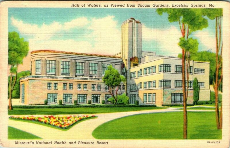 Title (ebay affiliate link): C44-0473, HALL OF WATERS, SILOAM GARDENS, EXCELSIOR SPRINGS, MO. POSTCARD.