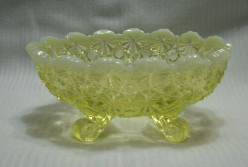 Vintage Yellow Depression Opalescent Glass Daisy & Buttons Candy Dish GLOWS