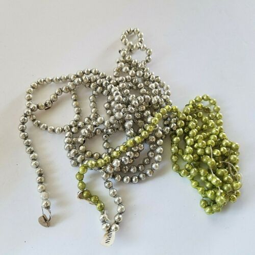 vintage glass mercury garland Christmas tree Japan silver green bead