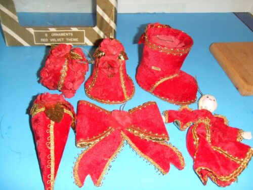 6 ANTIQUE CLOTH RED VELVET CHRISTMAS ORNAMENTS JAPAN WARDS BRAND