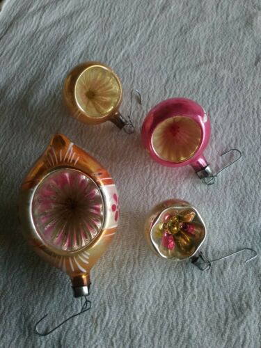 Vintage Antique Indented Mercury Glass Christmas Ornaments Lot of 4