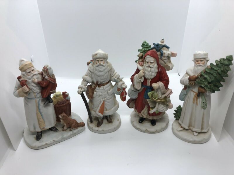 Lot of 4 Vintage Enesco The Gifted Line Ceramic / Porcelain Santa Figurines