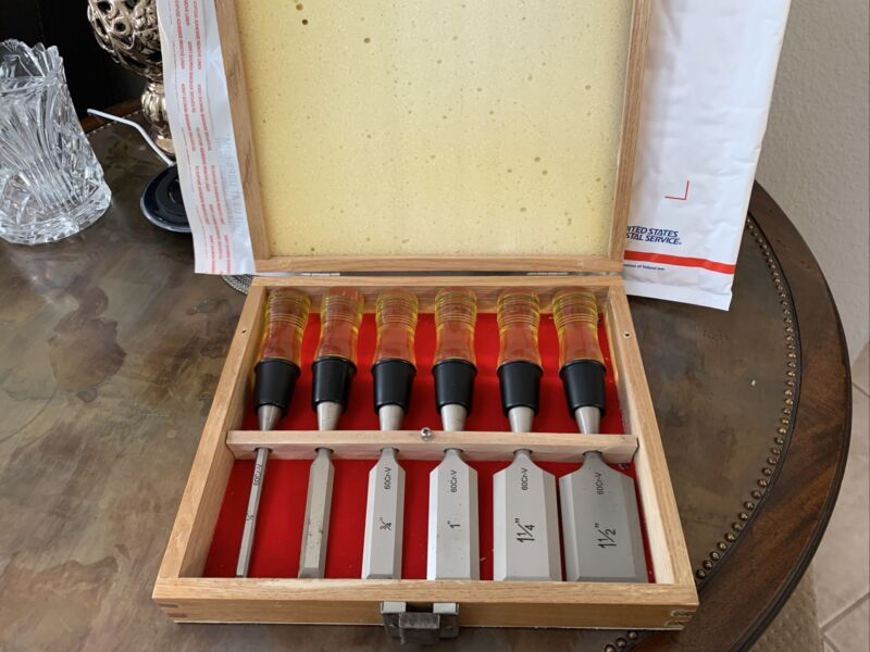 Title (ebay affiliate link): Vintage Alltrade 6 piece wood chisel set in wooden box