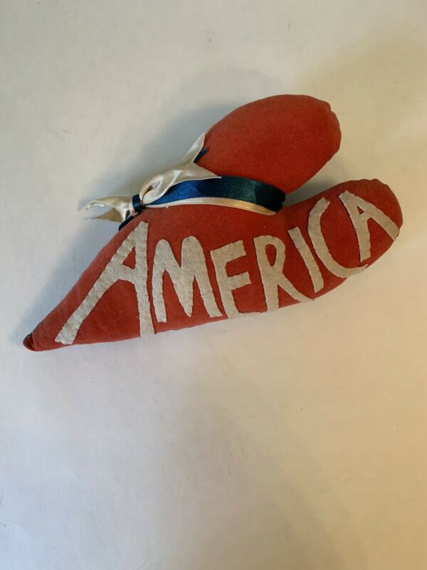 Title (ebay affiliate link): Vintage Heart Shaped Pillow Primitive Americana Handmade? Stuffed Red White Blue