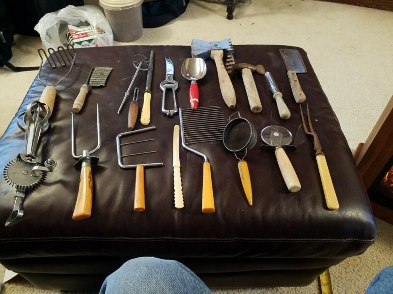 Lot Of 19 Farmhouse Antique Vintage Kitchen Utensils red bone bakelite