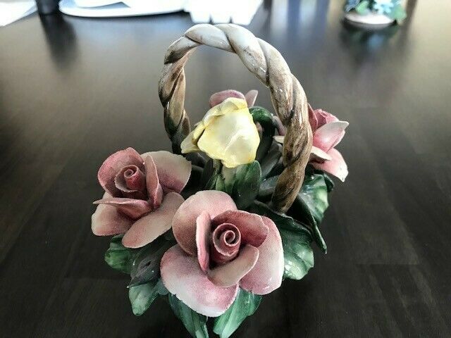 Title (ebay affiliate link): Capodimonte porcelain flower basket Roses Pink and yellow