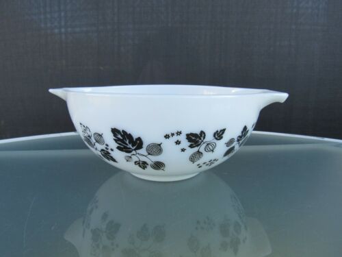 Title (ebay affiliate link): Vintage Pyrex Gooseberry Black on White Cinderella Bowl No. 443 2,1/2Qt