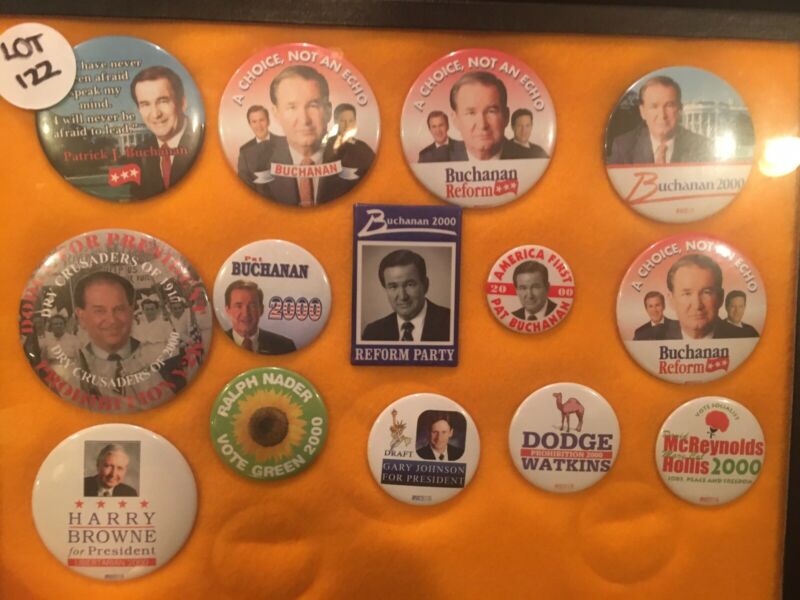 ESTATE LOT: Political candidate Pat Buchanan Buttons.