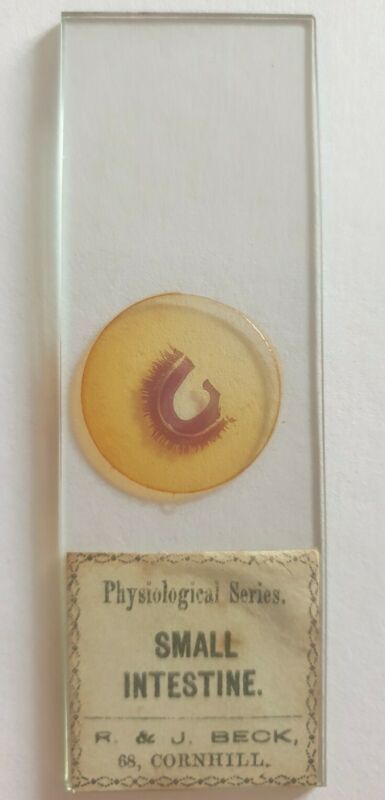 Title (ebay affiliate link): VERY FINE ANTIQUE MICROSCOPE SLIDE SMALL INTESTINE . BY R & J BECK