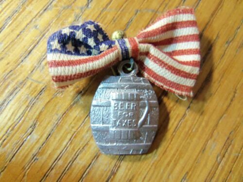 ADVERTISING PINBACK BUTTON RIBBON TAXES ON BEER