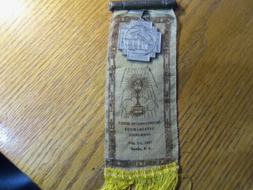 Title (ebay affiliate link): PINBACK BUTTON RIBBON BADGE EUCHARISTIC CONGRESS 1937 MANILA, P.I. RELIGIOUS