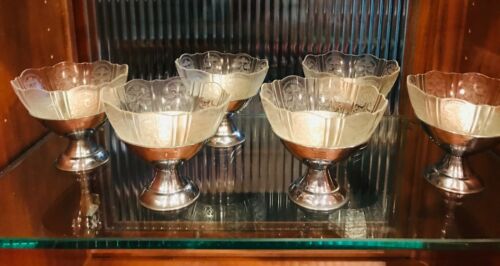 American Sweetheart Clear Depression Glass Stainless Sherbet Dessert Cup 6 XMAS