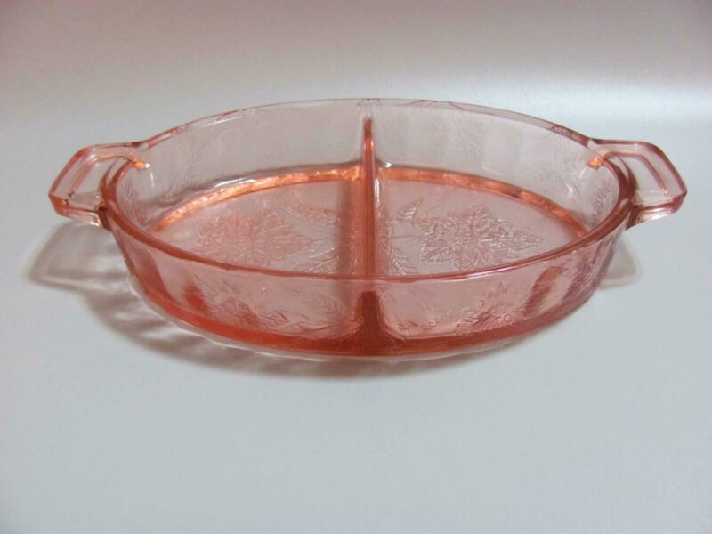 Title (ebay affiliate link): Jeannette Glass Floral Poinsettia Two Handle Pink Divided Relish Dish