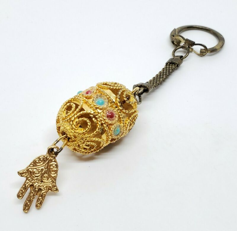 Title (ebay affiliate link): Ornate Vintage Gold Tone Faux Stone Turquoise Coral Hamsa Dangle Charm Key Chain
