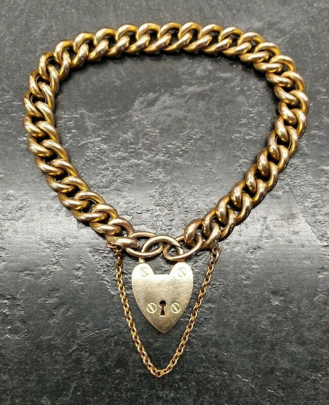 Title (ebay affiliate link): Old Vintage Rolled Gold Curb Link & Heart Padlock Fastener Bracelet 7" In Length