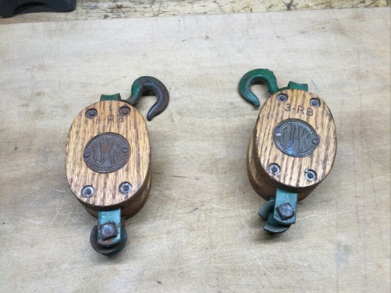 Title (ebay affiliate link): 2 Vintage Wooden Pulleys Block And Tackle UM 3-RB Nautical