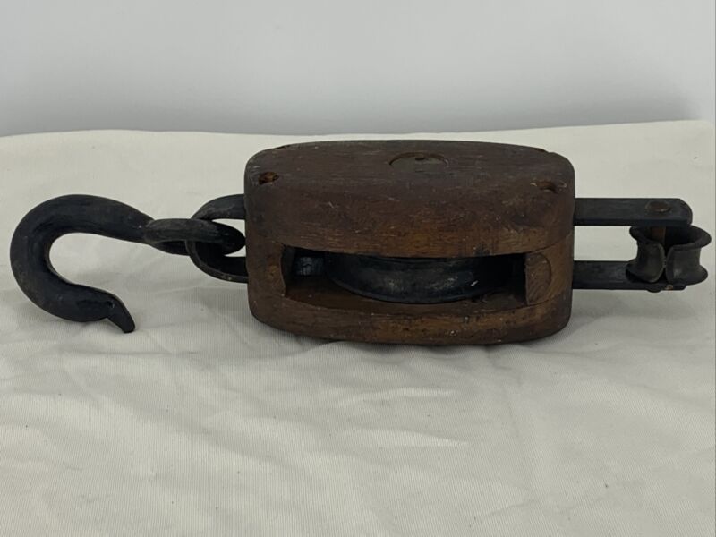 Title (ebay affiliate link): Vintage Antique Single Block & Tackle Pulley Maritime Estate Find