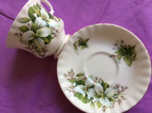 Title (ebay affiliate link): ROYAL ALBERT*Trillium*Bone China Tea Cup & Saucer*White Floral & Greenery*Gold T