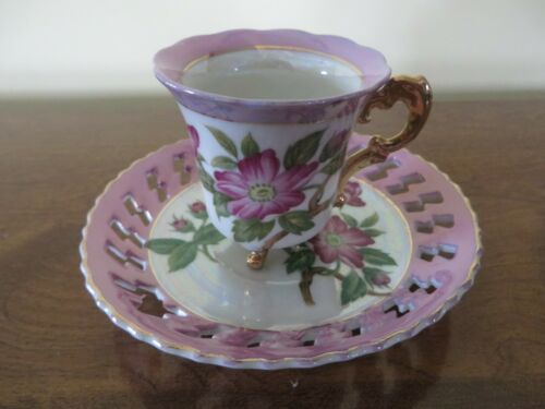 JAPAN CUP AND SAUCER DEMITASSE FOOTED FLORAL LUSTRE