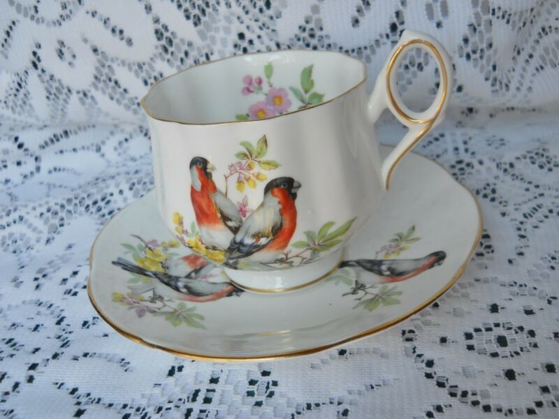 Vintage Royal Dover Bone China England Tea Cup And Saucer Lovely Birds!