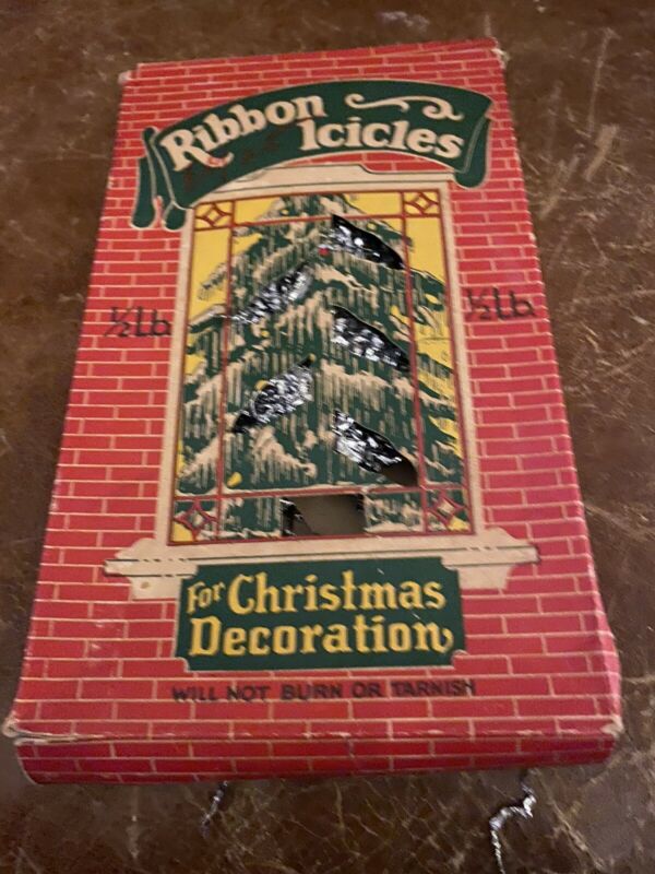 Title (ebay affiliate link): Vintage RED GREEN WHITE Box RIBBON Icicles Tinsel Christmas Tree Decor~1/2 LB.