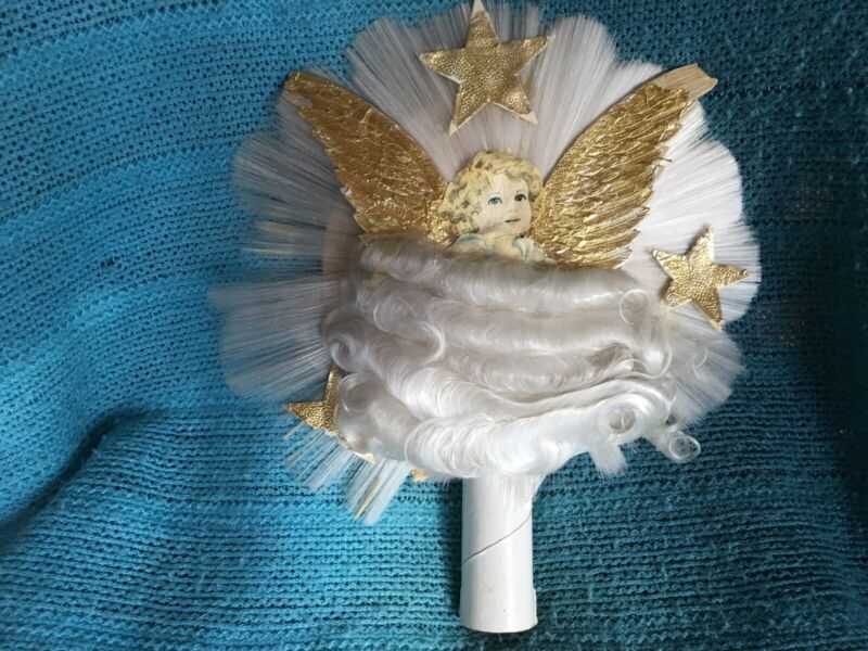 Antique Vintage Christmas Angel Tree Topper Angel Hair Spun Glass Gold Foil 1940