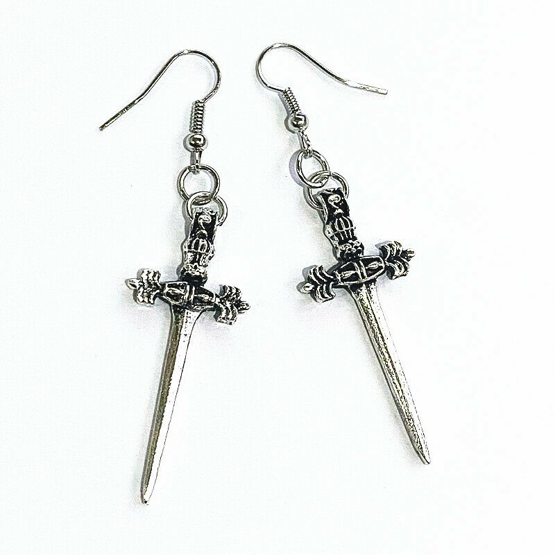 Title (ebay affiliate link): Antique silver sword earrings The dark witch pendant Gothic Antique sword