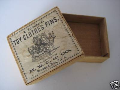 Antique 1900 Toy Clothes Pins MEC & Co Wood Box