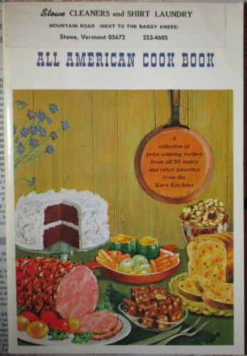 Title (ebay affiliate link): Karo All American Cook Book Stowe Cleaners & Shirt Laundry Vermont