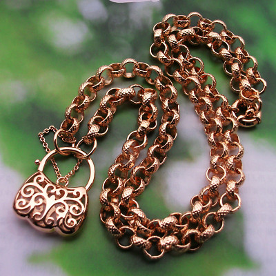 Title (ebay affiliate link): 9ct Rose Gold GF Solid Necklace & Padlock "Stamped 9K"