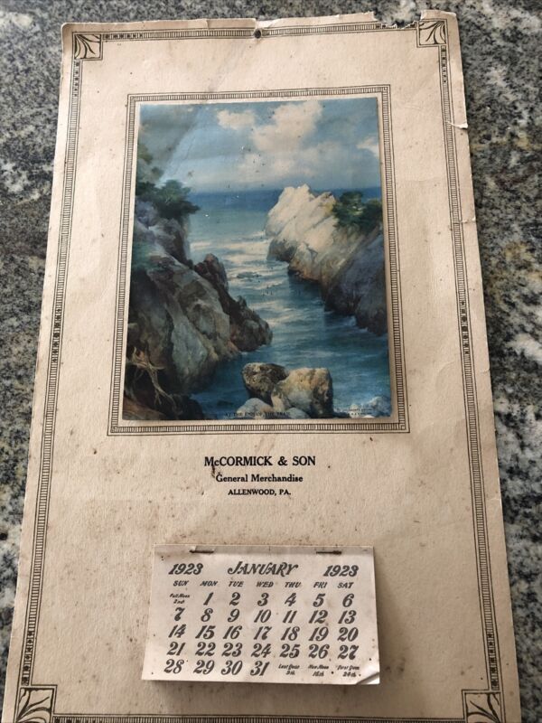 Title (ebay affiliate link): Vintage 1923 McCORMICK ALLENWOOD PA General Store Advertising Paper Calendar