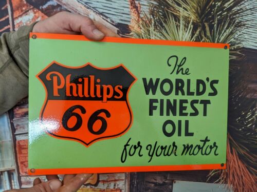 OLD VINTAGE 1960''S PHILLIPS 66 GASOLINE PORCELAIN ENAMEL GAS PUMP STATION SIGN
