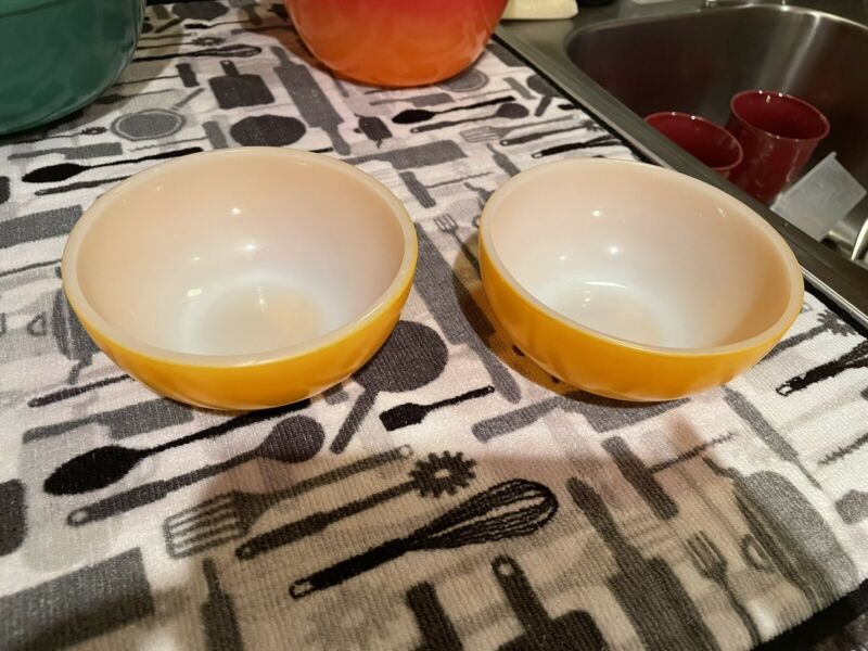 2 - VINTAGE FIRE KING FIRED ON YELLOW CHILI CEREAL BOWL