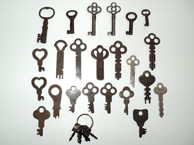 Title (ebay affiliate link): 24 Antique Furniture KEYS Cabinet Keys BARREL Flat Keys