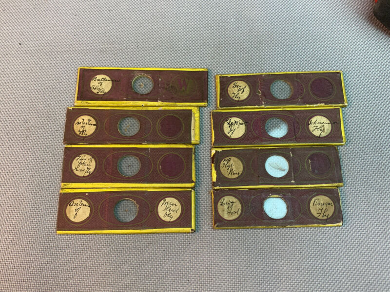 Title (ebay affiliate link): Lot Of 8 Antique Microscope slides Sections Of Fly Leg Wing Antennae