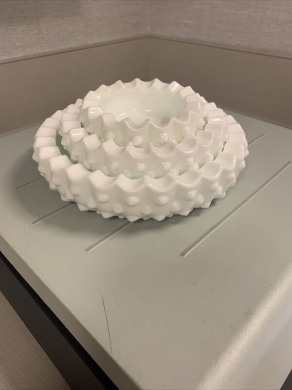 Title (ebay affiliate link): VINTAGE FENTON MILK GLASS HOBNAIL STACKING ASHTRAYS, MINT CONDITION!