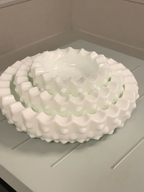 Title (ebay affiliate link): VINTAGE FENTON MILK GLASS HOBNAIL STACKING ASHTRAYS, EXCELLENT CONDITION!