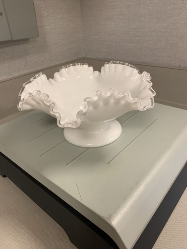 Title (ebay affiliate link): VINTAGE FENTON SILVER CREST MILK GLASS, CRIMPED RIM COMPOTE, MINT CONDITION