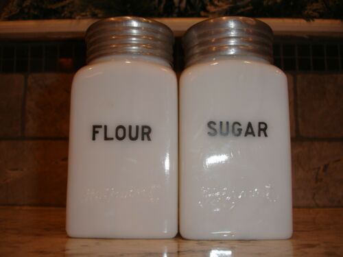 Title (ebay affiliate link): Mckee Hotpoint milk glass flour & sugar shakers not Tipp Hazel Atlas Fire King