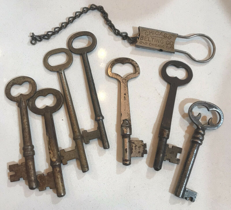 Title (ebay affiliate link): LOT OF 7 ANTIQUE SKELETON, FURNITURE, BARREL, CABINET KEYS WITH KEYCHAIN