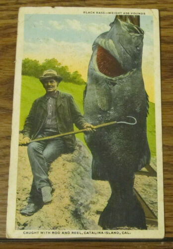 Title (ebay affiliate link): 1925 Vintage Postcard Catalina Island California CA 436 pound Black Bass