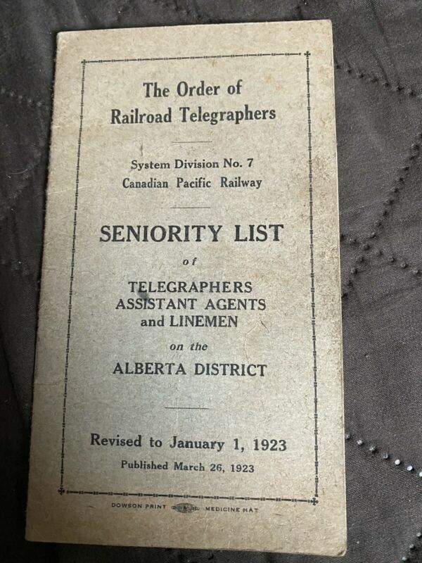 Title (ebay affiliate link): The Order Of Railroad Telegraphers- Seniority List- Revised To Jan 1, 1923