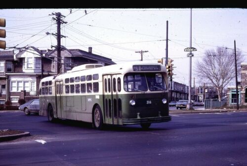 Title (ebay affiliate link): PHILADELPHIA TRANS CO ORIGINAL SLIDE TROLLEY BUS 316 AT WYOMING AV & 7TH ST 1971