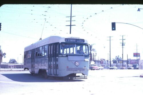 LOS ANGELES MTA ORIGINAL SLIDE OF PCC CAR 3006 SIGNED V VERMONT TO MONROE
